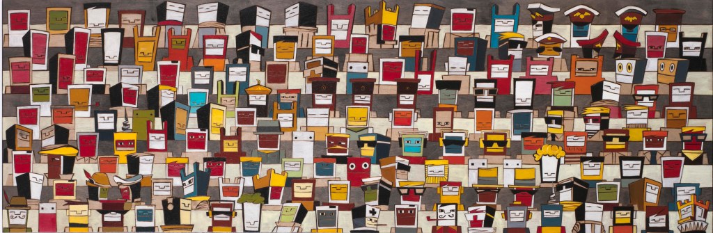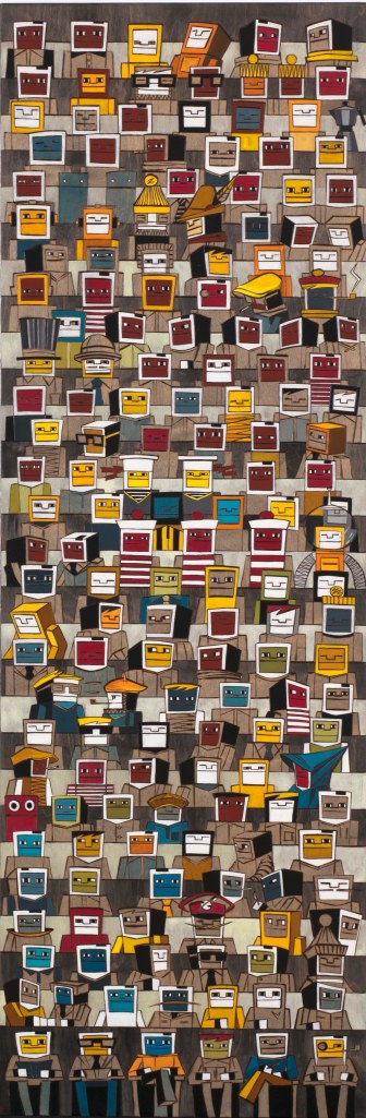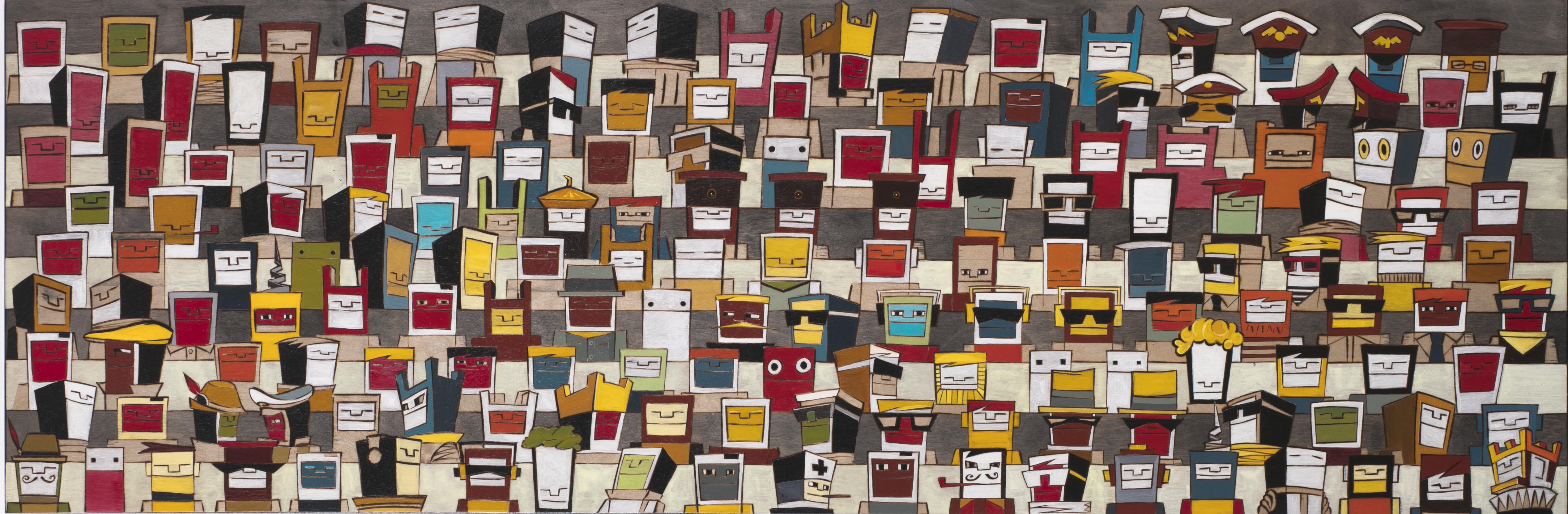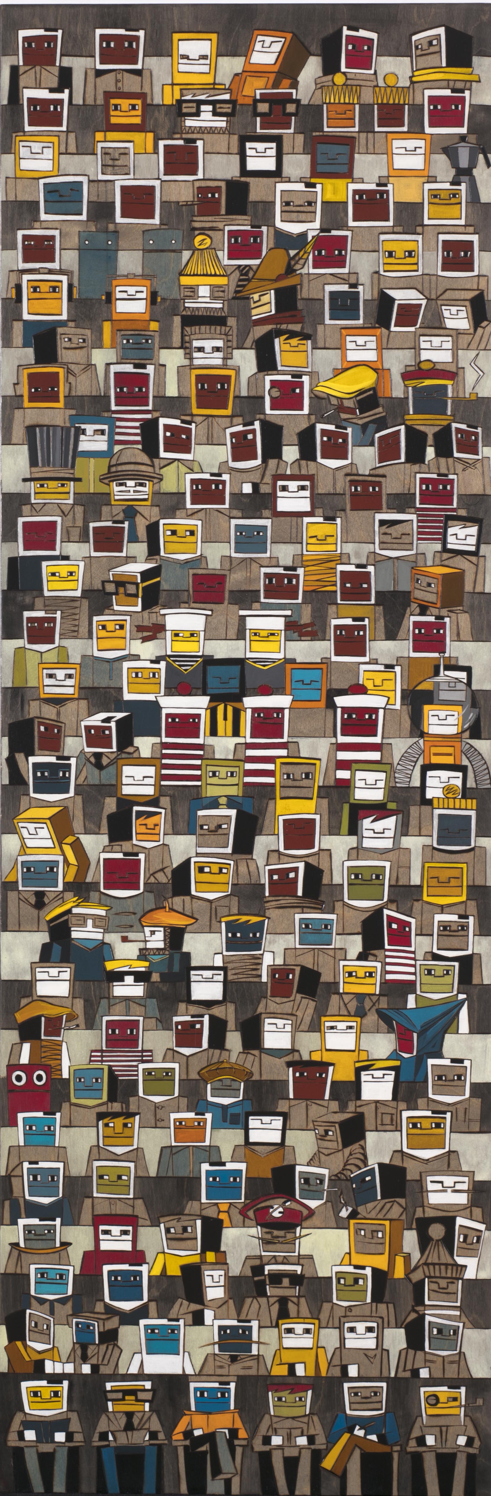 Диорама нескончаемых лиц, глаз и сдержанной мимики тысячи персонажей создаёт эффект чего-то нескончаемого и тотального, наполняя пространство нового замысла Кирилла Рубцова особой динамикой и сложной фокусировкой.