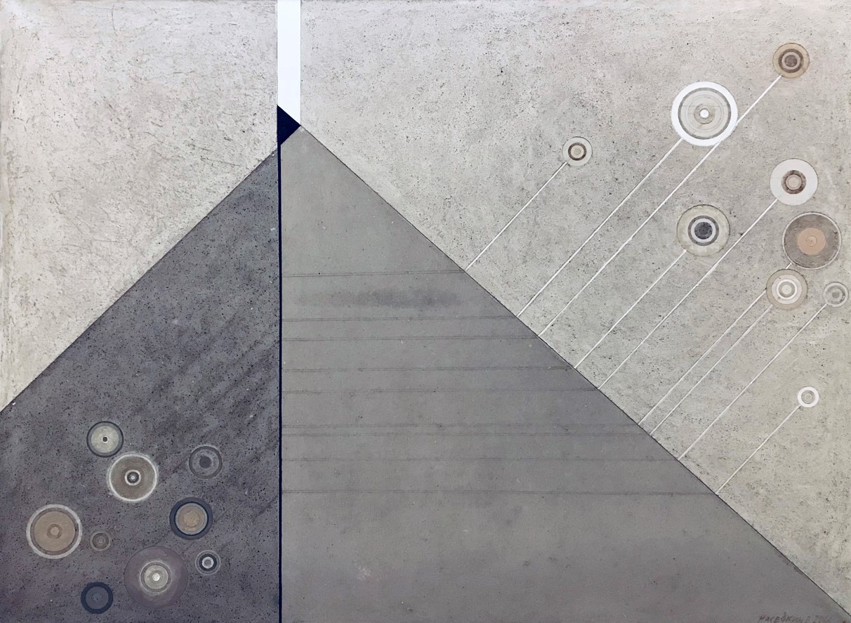 В моём случае, повторюсь, речь идёт о метафоре. Я нахожусь на территории искусства и предлагаю зрителю соответствующий понятийный ряд. Я акцентирую беспредметное искусство как альтернативу фигуративному видению реальности, а геометрию форм как обращение к первоосновам, к идеальному, сокрытому за материальными покровами внешнего мира. Здесь схемы-идеограммы созвездий парят и впечатываются в поверхность холстов, открывая дали геометрической бесконечности и рождение новых планет и звезд.