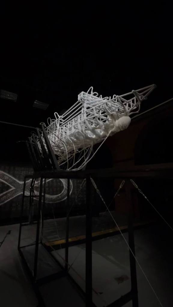 В залах музея появятся две инсталляции с кораблями. Покрытое льдом судно Concordia, впервые представленное в павильоне Антарктиды в Венеции в 2014 году, и инсталляция «Теория струн» — перевернутый корабль, корпус которого сделан из специального бетона, замешанного на вулканическом пепле. Также в экспозиции посетители впервые увидят 12-метровое керамическое панно с древнеегипетскими текстами и рисунками — подобное панно находится в основании легендарной инсталляции «Уроборос», сделанной в 2021 году для выставки современного искусства Forever is Now и установленное на плато Гиза. «Уроборос» — метафора бесконечности человеческой жизни.