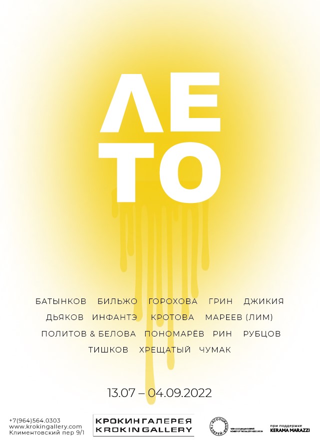 «Лето» – выставка-калейдоскоп, отголоски, вобравшие полноту однажды сказанного, правда, в ином художественном контексте, в ином наполнении, в ином смысле. Всё это сообразует новую игру и новую экспозицию, участники которой, в большинстве своём соответствуют номинации хрестоматии современного отечественного искусства.