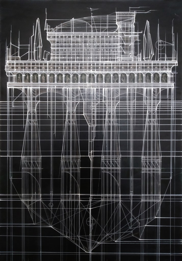 Так образ античного храма в своём же отражении предстает уже футуристическим индустриальным пейзажем, или строгие архитектурные мотивы древнего Египта дополнятся сетью антенн и радаров. Также в изображениях есть намек на двойственность, характерную для эпохи метамодернизма. Острова на картинах зачастую имеют свои отражения, и на этих отражениях объекты иногда предстают уже руинированными временем или катаклизмами. С одной стороны, это намек на неизбежность последствий законов энтропии и однонаправленность стрелы времени, с другой стороны — напоминание о катастрофических последствиях попыток воплотить в жизнь утопические мечты. Но все-таки времена хаоса и разрушения неизбежно сменяются временами стабильности и роста. И мне бы хотелось, чтобы острова, изображенные на моих работах, ассоциировались с новой землей, обнажившейся после потопа, точками роста новой жизни и новой цивилизации