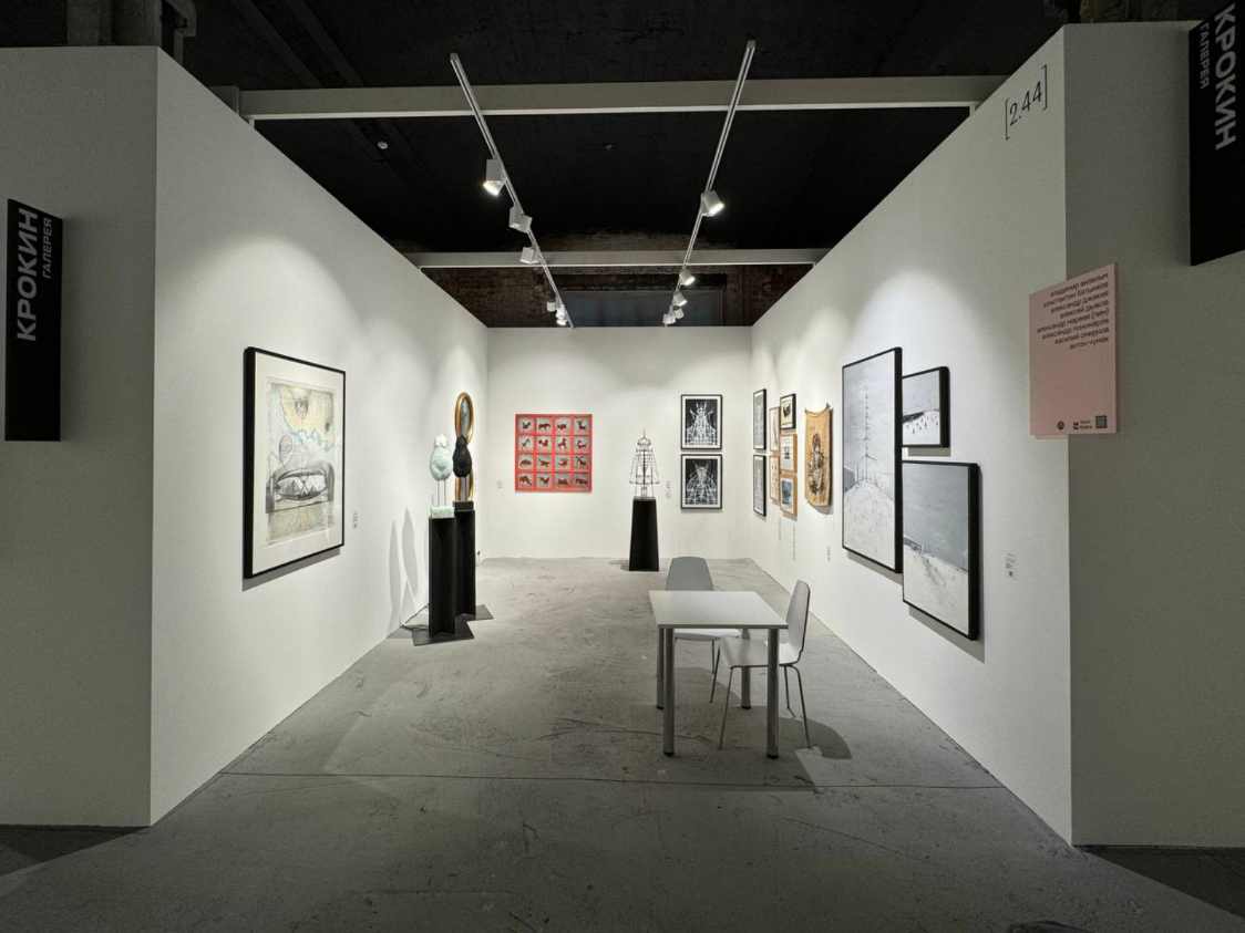 Стенд Крокин галереи выразительная реплика персональных выставок вышеобозначенных авторов, художников разных поколений представленных галереей в своих залах и в пространствах московских музеев. Они говорят о своём, делают это внятно, структурируя пространство особой визуальной интонацией, создавая сложную картину восприятия, соединяя несоединимое в условиях общей экспозиции.