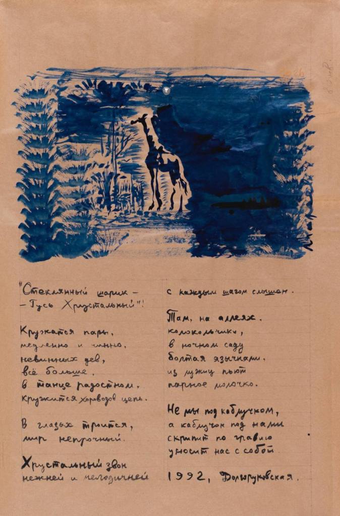 Верлибры, запечатлённые им на поверхности упаковочной бумаги, в массе своей родились в далёкие 90-е, и в единстве с визуальными образами реконструируют особую, присущую тому времени интонацию. Но речь не об иллюстрации с присущей ей субординацией и иерархией. Напротив. У Мареева и каллиграфия текста, и графическая «виньетка», позаимствованная им у рукописных книг, монолитны и слиты в едином «теле» произведения, что, в свою очередь, напоминает о принадлежности автора к эстетике художников пост-концептуалистов.